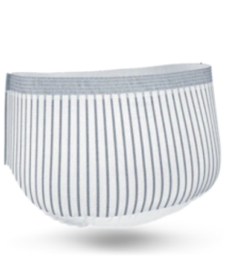 Designed like regular underwear with distinct, elastic waistband and discreet brief cut
