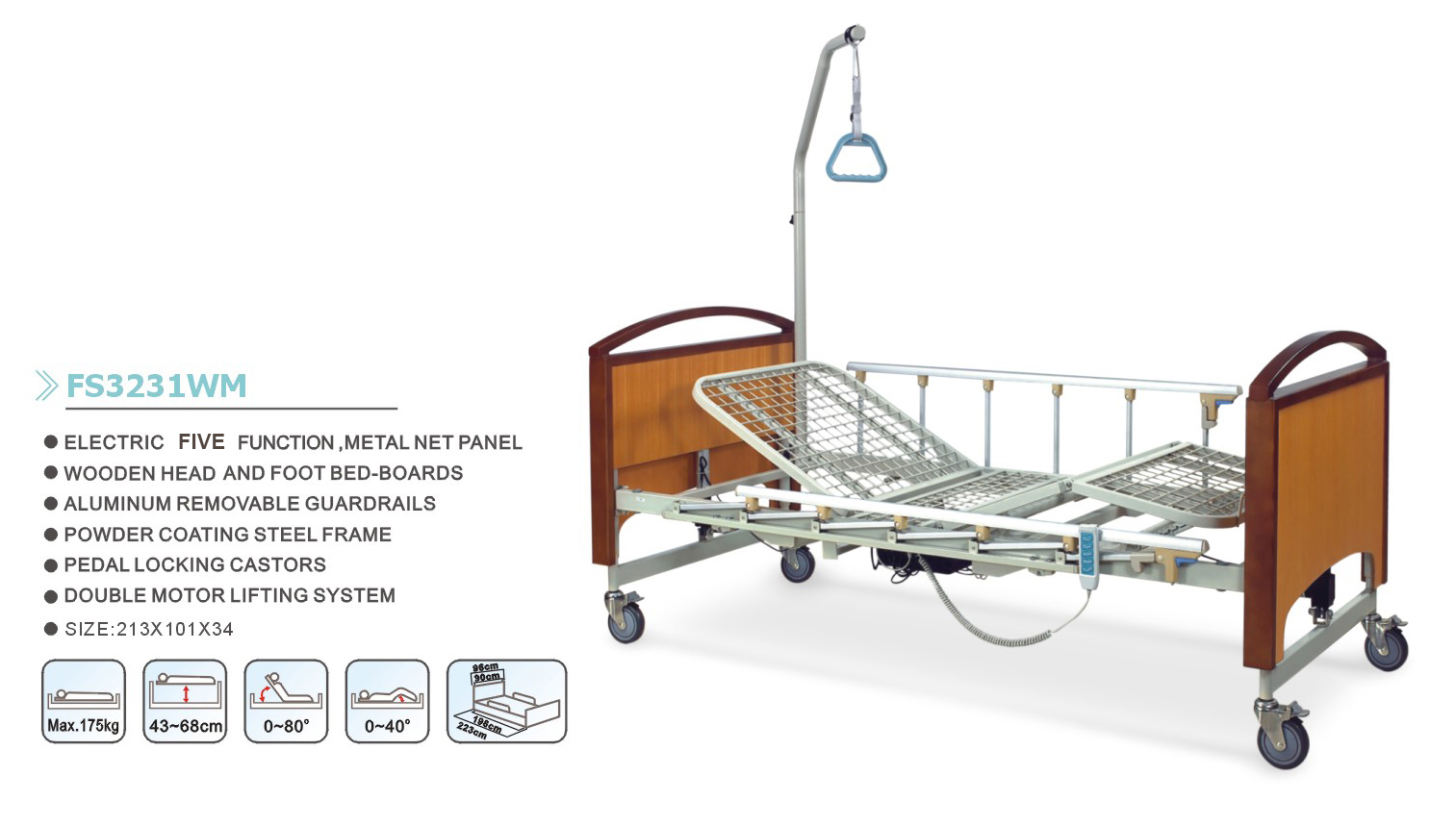 FS3231WM Bed With Battery Back up, Sides and overbed Pole
