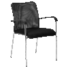 Padded visitor chair made with black bonded leather. Chrome sleighbase, chrome arms with leather cover. Lead time on some products are 14-21 business days.