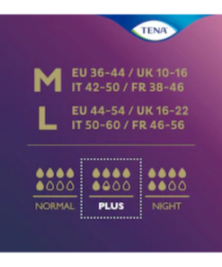 TENA Lady Pants Plus High Waist Crème women’s incontinence underwear look and feel just like regular underwear but are also designed for moderate to heavy bladder weakness. With a chic crème colour both on the inside and outside they are elegant and beautifully discreet. A high waist, feminine design and soft-fit fabric ensure they stay comfortably in place all day while the reliable Plus level absorbent core locks in even heavier leaks quickly and neutralises odours helping you stay fresh and feminine all day long.