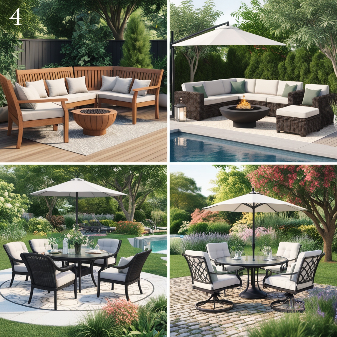 Patio furniture sets often include a table and matching chairs, offering cohesion to outdoor dining or lounging areas. Choose from rustic wood, sleek metal, or lightweight plastic to suit your style.